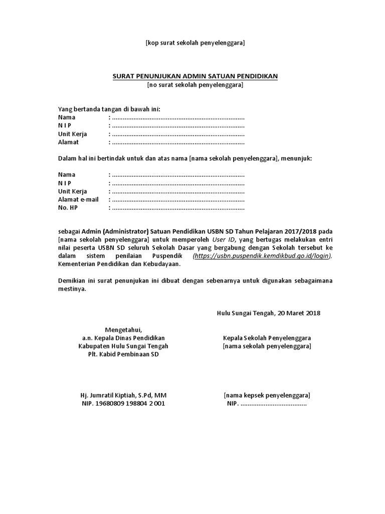 | Judul: Surat Penunjukan Admin Usbn |
